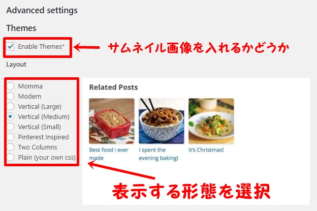 Enable Themes:チェックを入れるとサムネイル画像が表示される