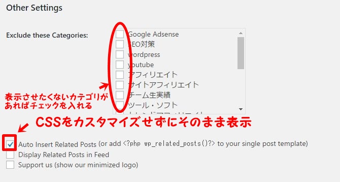 基本的には「Auto Insert Related Posts」の部分にチェックを入れれば関連記事が自動で記事下に表示されます。