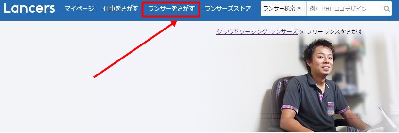 次に上部メニューバーの「ランサーさがす」をクリックします。