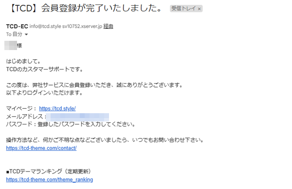 そうすると、登録したメールアドレスにTCDから登録完了のメールが届きます。