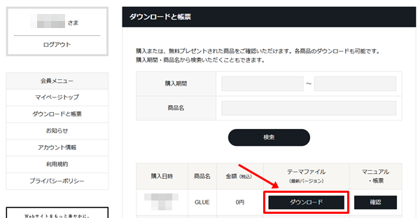 次にWordPressテーマ「GLUE」のダウンロード方法について解説します。